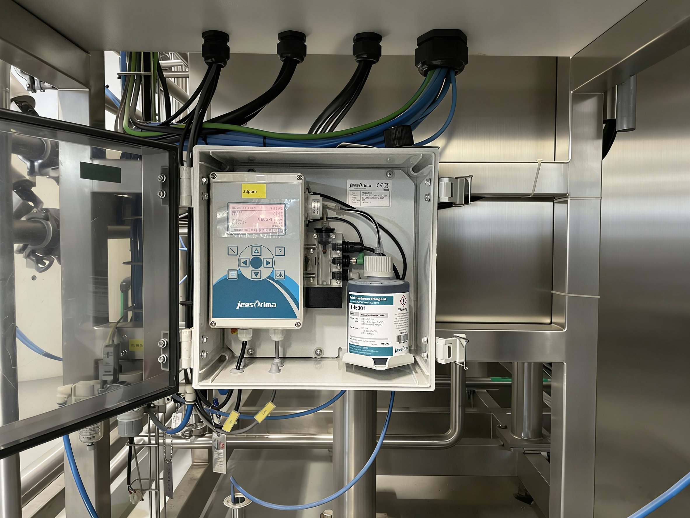 南京某生物科技公司为典型应用案例:该公司洁净设备间配套软化水系统,此前因硬度监测不准,频繁出现设备结垢、运维成本高企问题。我司为其定制在线硬度分析仪安装方案后,设备精准适配其生产工况,实时稳定监测软化水硬度,彻底杜绝结垢隐患,运维工作量降低 60%,且顺利通过后续 GMP 合规审核,生产效率与设备寿命均显著提升。配图为该公司洁净设备间安装现场实拍图。